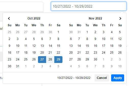 기간 설정뿐만아니라 단일 날짜 설정도 가능합니다. "input[type=date]"로 설정할 수 없는 시,분까지 설정할 수 있어서 이번 프로젝트에서 유용하게 사용했습니다.