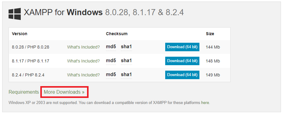 Includes: Apache 2.4.56, MariaDB 10.4.28, PHP 8.0.28 & PEAR + SQLite 2.8.17/3.38.5 + multibyte (mbstring) support, Perl 5.34.1, ProFTPD 1.3.6, phpMyAdmin 5.2.1, OpenSSL 1.1.1t, GD 2.2.5, Freetype2 2.4.8, libpng 1.6.37, gdbm 1.8.3, zlib 1.2.11, expat 2.0.1,