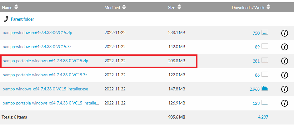 저는 Window용 7.4.33버전을 portable zip파일로 다운받았습니다.