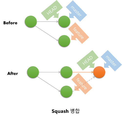 3-way 상태에서 현재 브랜치와 다른 브랜치의 소스는 병합하지만, 분기는 그대로 유지하는 병합 방법입니다.